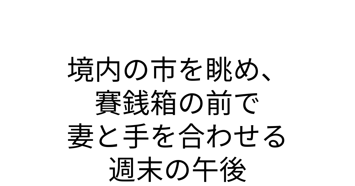 市を一通り見て回った後、私たちは賑わいを背にして少し静かな境内へと足を進めます。参拝をする前には、まず自分のポケットを探って小銭がないかを確認します。一円玉や五円玉しか見つからず、「本当に小銭しかないな」と苦笑いしながら、隣に立つ妻に「少し小銭を貸して」とねだるのが、いつの間にか私たちの定番のやり取りになっています。